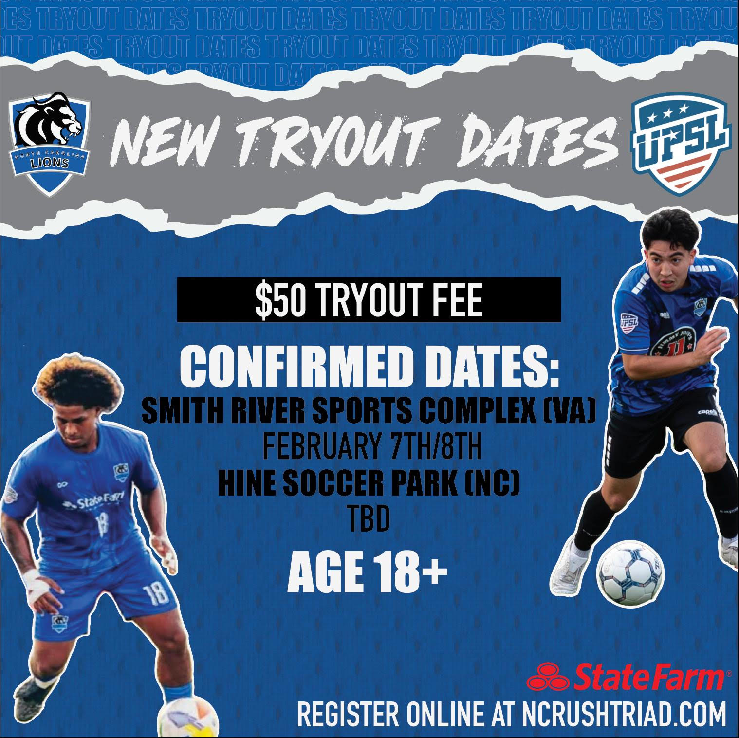Semi-pro soccer tryouts for NC Lions, member of UPSL.